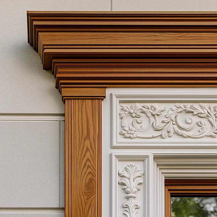Фасад дома - это его лицо, архитектурная визитная карточка, первое впечатление, которое здание производит на зрителя. Деревянный карниз и фасадный декор из полиуретана - два архитектурных инструмента, работающих на создание выразительности экстерьера. Массивный карниз из натурального дерева венчает фасад, создавая завершение кровли, защищая стены от осадков, добавляя природной аристократичности. Полиуретановые элементы - наличники окон, пилястры, молдинги, фризы - формируют архитектурную структуру стен, создают ритм, пропорции, стилистическую определенность. Вместе они превращают простую коробку здания в архитектурное произведение, где традиционная теплота дерева встречается с технологичной практичностью современных материалов.