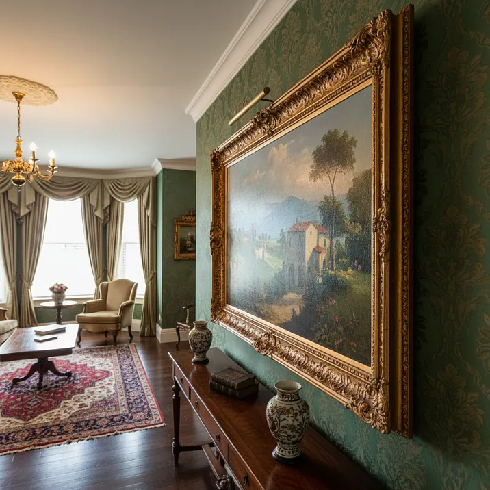 Цвет багета выбирается в гармонии с колоритом картины. Классическое правило гласит: багет должен повторять один из цветов картины, желательно темный или нейтральный, создавая рамку, которая собирает композицию, но не отвлекает от содержания. Золотые багеты универсальны для классической живописи, создавая ощущение ценности и торжественности.