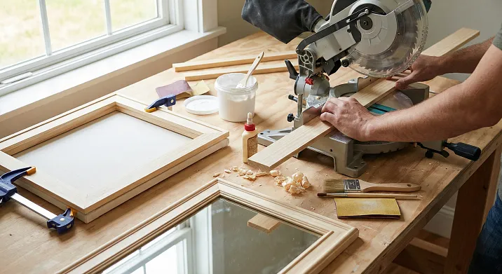 Если вы впервые работаете с багетом, потренируйтесь на ненужных обрезках. Сделайте несколько пробных распилов, научитесь держать пилу ровно и чувствовать материал. Только после этого приступайте к распилу деталей для рамы.