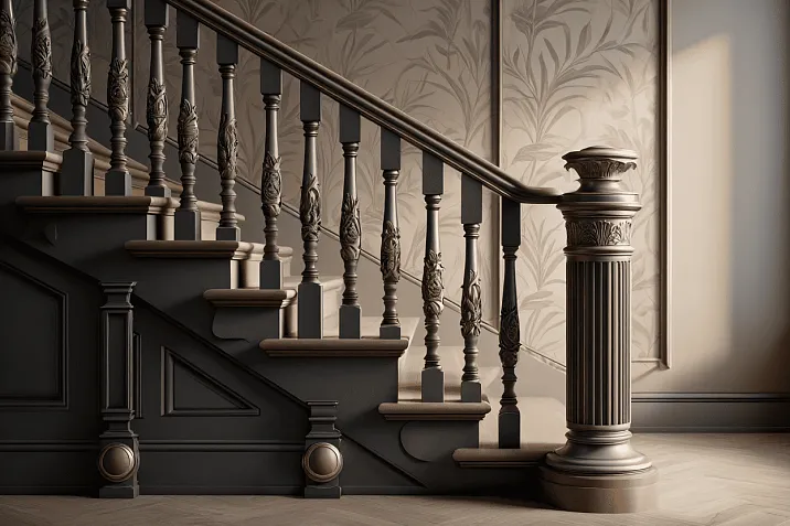 Классический стиль остается популярным выбором для респектабельных интерьеров. Балясины с каннелюрами, капителями и базами в духе античных ордеров создают атмосферу торжественности и надежности. Такие решения особенно востребованы в загородных домах и коттеджах.