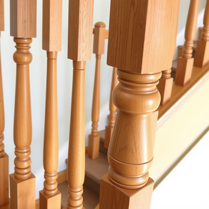Древесина остается наиболее популярным материалом для изготовления лестничных элементов. Деревянные балясины обладают уникальной способностью создавать теплую, уютную атмосферу в доме. Они легко поддаются обработке, что позволяет создавать изделия любой сложности и конфигурации.