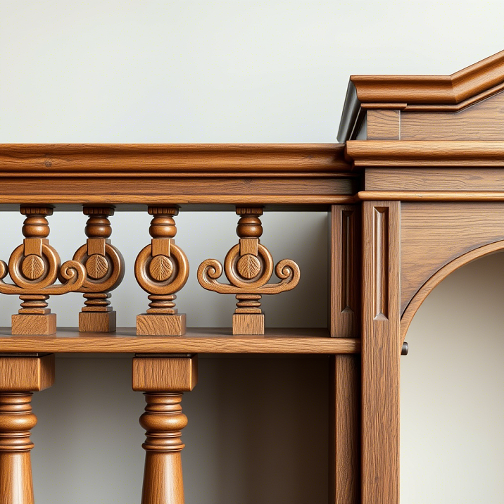 Рельефная резьба превращает балясину в произведение искусства. Растительные орнаменты, геометрические узоры или абстрактные композиции создают уникальные декоративные элементы.