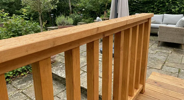Сосна — самый доступный вариант. Несмотря на невысокую природную стойкость к влаге, современная обработка делает сосновые балясины вполне пригодными для террас. Сосна легка в обработке, имеет приятный светлый цвет, хорошо впитывает защитные составы. Это оптимальный выбор для тех, кто хочет получить качественный результат при ограниченном бюджете.