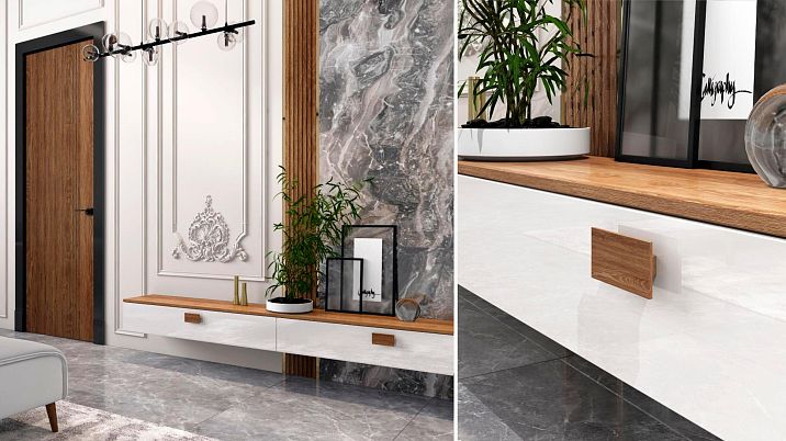 Декоративные элементы из массива дерева: В тренде – использование резных деревянных элементов, таких как накладки, молдинги и мебельные ножки. Они создают акценты, привлекают внимание и делают интерьер живым и уникальным.