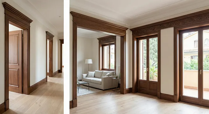 Вы когда-нибудь ощущали, что ваш дом выглядит как лоскутное одеяло? Разные двери, разные наличники, одна в классике, другая в современном стиле, третья вообще без обрамления. Коридор превращается в хаос стилей, где каждый проем живет своей жизнью, не связанный с соседними ни ритмом, ни формой, ни цветом. Это распространенная проблема, которую многие игнорируют, списывая на разновременный ремонт или экономию бюджета. А ведь именно обрамление дверных порталов формирует костяк интерьера, создает визуальный ритм, связывает разрозненные помещения в единое гармоничное пространство. Профессиональные дизайнеры знают: стиль интерьера задается не мебелью и обоями, а архитектурными деталями, среди которых дверные порталы занимают первое место по значимости.