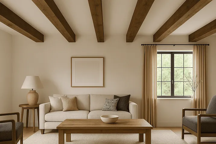 Декоративные потолочные элементы создают ощущение дорогой, продуманной отделки, что особенно ценится в загородной недвижимости. Правильно спроектированные и установленные балки становятся визитной карточкой дома, запоминающейся деталью, которая выделяет объект среди аналогов.