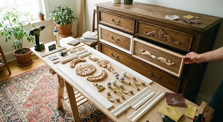 - Технология монтажа декоративных элементов на старую мебель