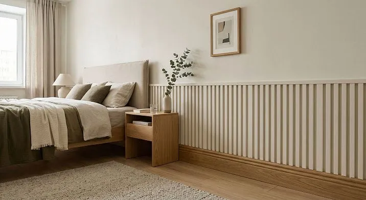 Как сочетать декоративные элементы и деревянный плинтус, чтобы спальня выглядела спокойно