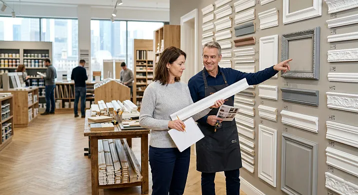 Шаг 3: Если стиль — классика или неоклассика → берите готовый комплект: молдинг + угловые накладки. Это экономит время на поиск совместимых элементов и гарантирует стилевое единство.