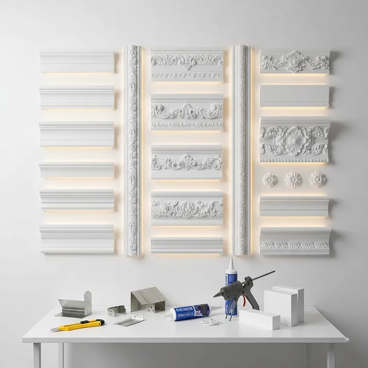 Первый и самый очевидный сценарий - когда финансы не позволяют рассматривать дорогие материалы. Гипсовая лепнина стоит от 1500-2000 рублей за погонный метр плюс сложный монтаж. Полиуретановые профили - от 800-1200 рублей. Деревянные карнизы и молдинги - от 2000 рублей и выше.