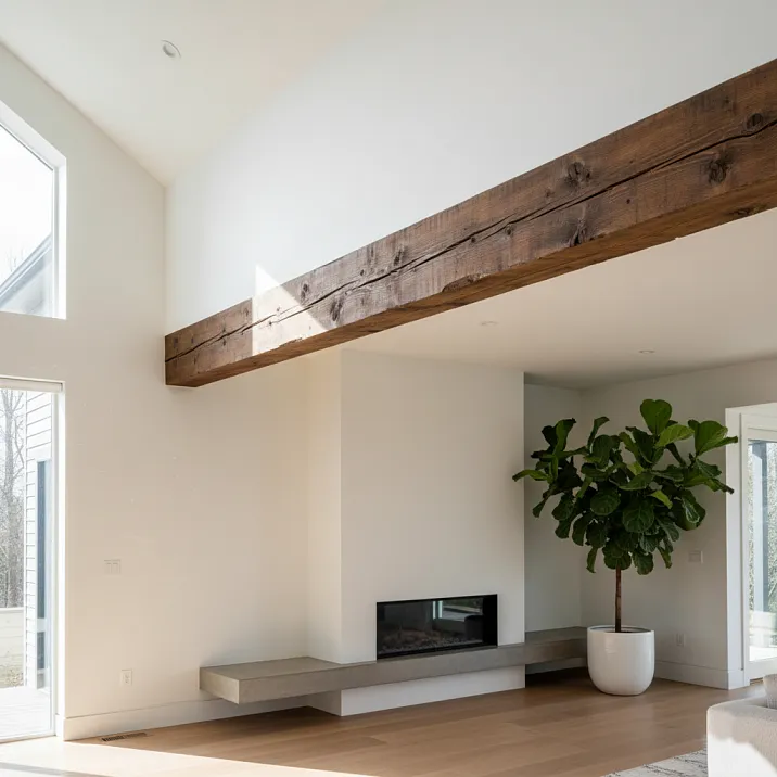 Продумайте цвет и фактуру. Балки должны либо гармонировать с общей палитрой, либо создавать намеренный контраст. Избегайте случайных сочетаний.