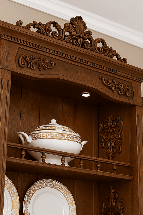 Особое место среди деревянных декоративных изделий занимает резьба по дереву - древнее искусство, которое продолжает развиваться и в наши дни. Резные изделия могут быть как самостоятельными декоративными элементами, так и частью мебели или архитектурных деталей.