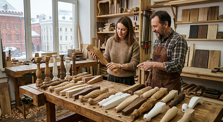 Реставрация требует точного воспроизведения: форма, орнамент, порода, поведение под отделкой. Ориентируйтесь на исторические формы в каталоге — кабриоль, точёные опоры с классическими профилями, резные ножки с акантовым рельефом.