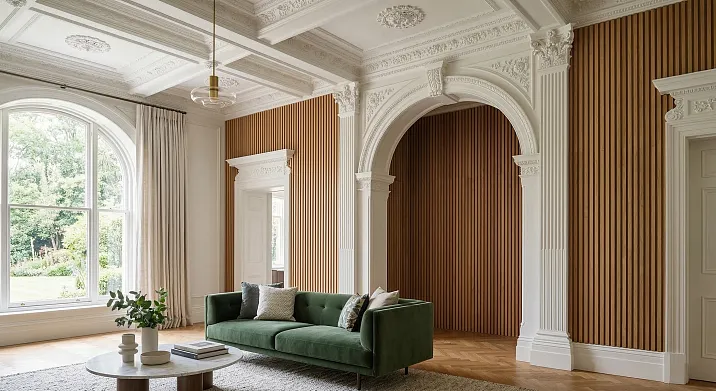 Можно ли сочетать деревянные рейки и лепнину в современном минималистичном интерьере?