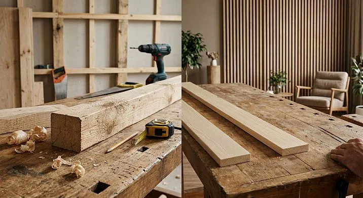 Деревянный брусок и рейка деревянная — это не синонимы и не взаимозаменяемые материалы. Это два разных инструмента с разной логикой применения. Брусок чаще работает там, где нужны жёсткость, несущая способность и скрытость. Рейка — там, где нужны точность, деликатность и видимый декоративный результат. Деревянная рейка на стену создаёт геометрический ритм и тёплую фактуру. Брусок под этими рейками — невидимую, но надёжную основу.