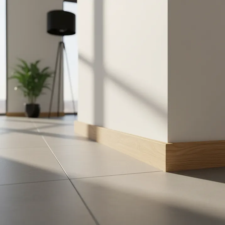 Сложность: точное совпадение оттенка. Даже дубовые плинтусы из разных партий могут различаться тоном. Для идеального результата покупайте плинтусы и напольное покрытие из одной коллекции одного производителя или тонируйте плинтусы после укладки пола, подбирая оттенок визуально.