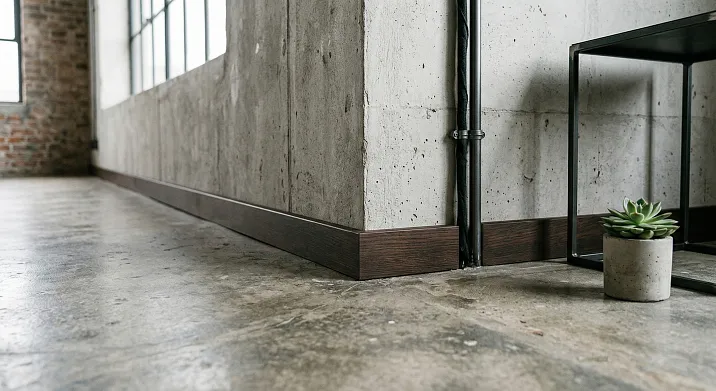 Это решение для тех, кто понимает: плинтус будет «жить» в интерьере — меняться со временем, фиксировать историю пространства. В лофте — это аутентично. В квартире с детьми — нет.