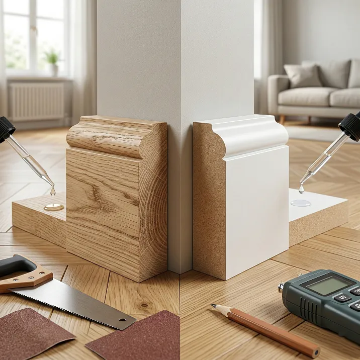 Вопрос «деревянный плинтус или МДФ» задают себе тысячи людей ежегодно. И большинство получают либо рекламный ответ от заинтересованного продавца, либо расплывчатое «зависит от ситуации» от тех, кто сам не уверен. Эта статья — другая. Здесь каждый материал получает честную оценку по конкретным параметрам, без лукавства и маркетинговых умолчаний.