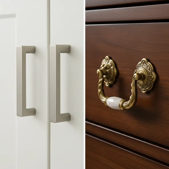 Премиальная фурнитура часто специализирована. Классические латунные ручки с орнаментом рококо предназначены исключительно для классической мебели. Минималистичные стальные планки — для современной. Деревянные ручки из необработанного дуба с сучками — для стиля ваби-саби или рустик.