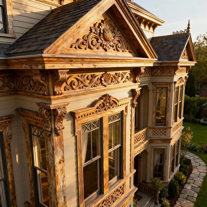 Безусловно, резной декор прекрасно сочетается с современной архитектурой, если правильно подобрать стиль и пропорции элементов. Для современных домов подходят более лаконичные, геометрические орнаменты, отказ от избыточной декоративности. Можно использовать контраст текстур - гладкие современные материалы в сочетании с фактурным деревянным декором. Важно соблюдать чувство меры: несколько хорошо продуманных акцентов работают лучше, чем обилие разнородных элементов.