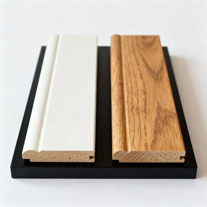 Принципы комбинирования. Используйте МДФ для больших гладких поверхностей, которые будут окрашены укрывной краской (панели, плинтусы высотой более 100 мм, широкие молдинги, потолочные карнизы). Используйте массив для элементов, где важна текстура, тактильность, долговечность (рейки на видных местах, резные элементы, перила, ручки, элементы, к которым прикасаются).