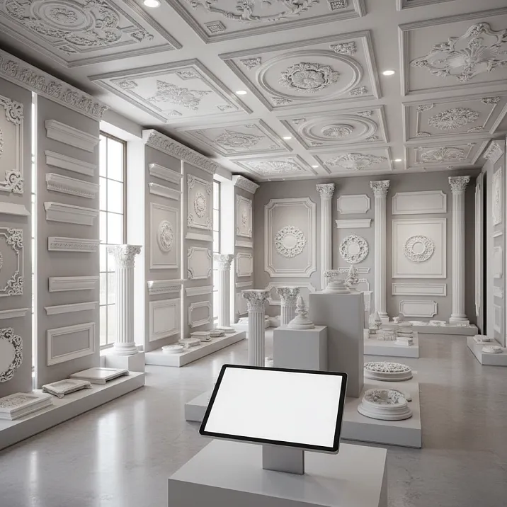 Систематизация ассортимента по стилям позволяет легко подобрать совместимые элементы: классические коллекции объединяют карнизы, молдинги, розетки, пилястры в едином стилистическом ключе. Современные коллекции предлагают лаконичные профили для минималистичных интерьеров.