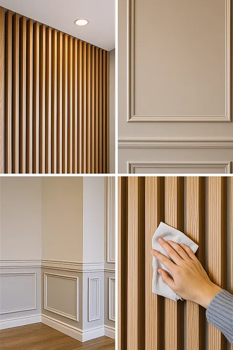 Деревянные элементы поддаются реставрации. Глубокие царапины и вмятины шлифуются мелкой наждачной бумагой, поверхность повторно покрывается маслом или лаком. Рейка декоративная деревянная может быть полностью отшлифована и перекрашена в новый цвет при смене дизайна. Натуральное дерево допускает многократное обновление без замены элементов.