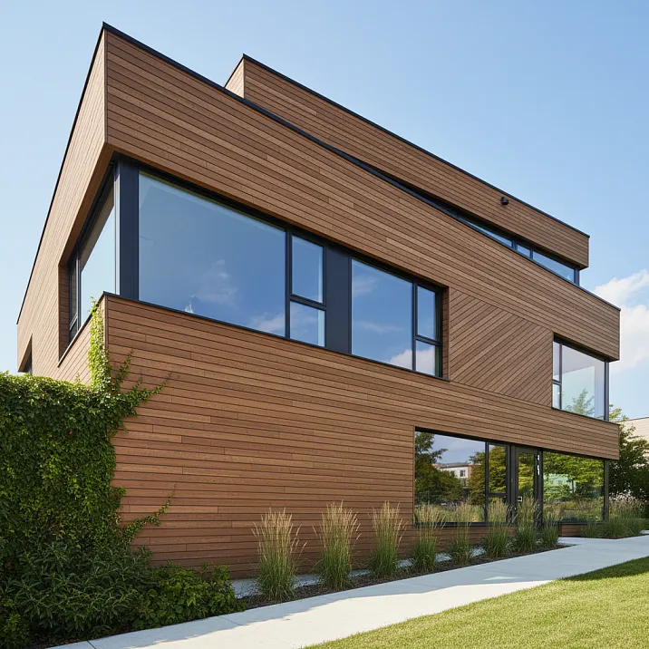 Композитные материалы - ДПК, фиброцемент, металл с древесной текстурой - обеспечивают практичность, минимальные эксплуатационные расходы, стабильность характеристик на протяжении десятилетий. Они оптимальны для коммерческих объектов, многоквартирных домов, проектов с ограниченным бюджетом на обслуживание.