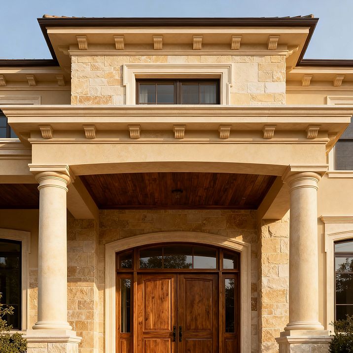 Венчающий профиль защищает стену от стекающей дождевой воды. Его форма и размеры рассчитываются таким образом, чтобы максимально эффективно отводить влагу от фасада. Но красота классического карниза заключается не только в его функциональности, но и в совершенстве пропорций, создающих ощущение завершенности и гармонии.