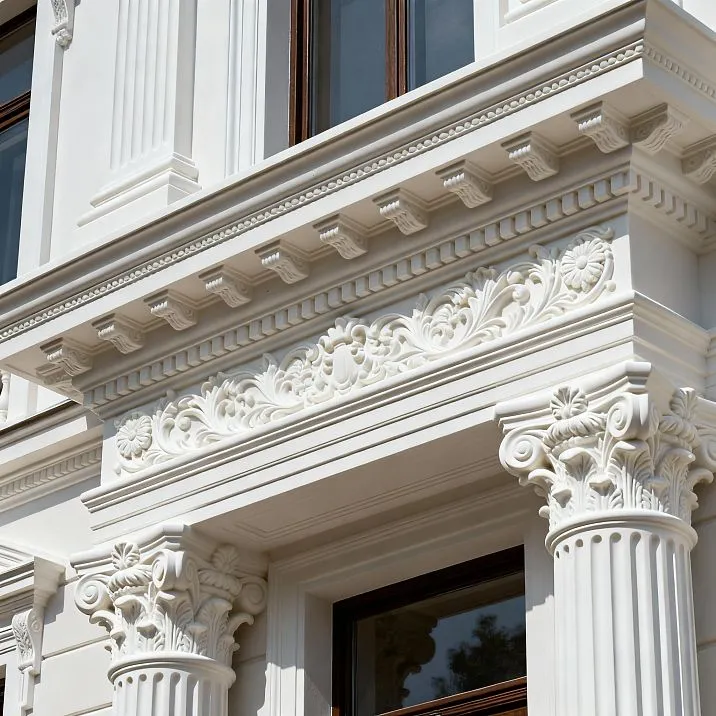 Профилированные карнизы с классическими обломами — дорическими, ионическими, коринфскими — воспроизводят исторические образцы с музейной точностью. Современные технологии литья позволяют передать все нюансы античных профилей.