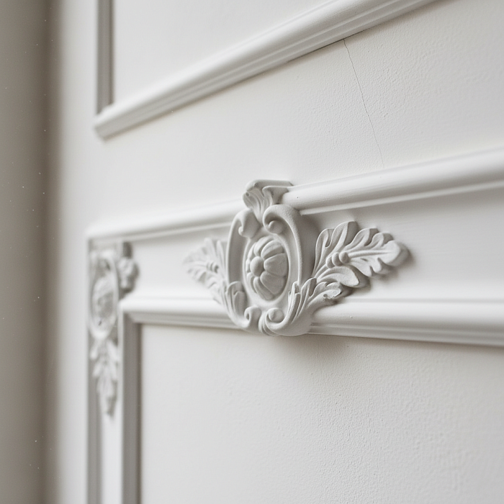 Акцентные стены с панелями из молдингов из полиуретана становятся композиционными центрами комнат. Потолочные карнизы визуально поднимают высоту, добавляют благородства. Порталы вокруг дверей превращают обычные проемы в архитектурные события. Всё это работает не само по себе, а как единая система, где каждый элемент на своем месте, где соблюдены пропорции, где учтено освещение.