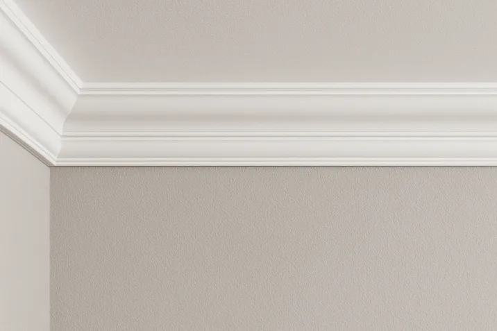 Оптимальные размеры для потолочных галтелей: 30-60 мм для стандартных помещений, до 100 мм для высоких потолков. Профиль обычно асимметричный, с большим размером по вертикали.