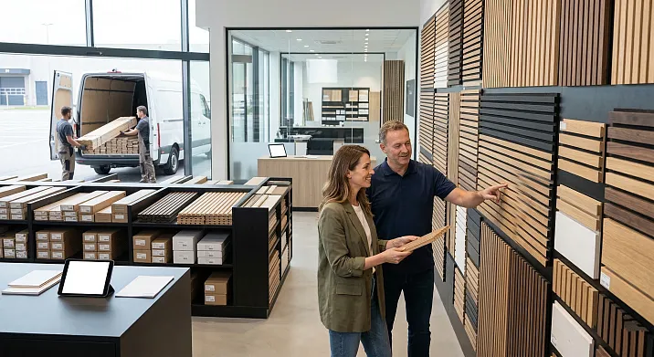 В крупных городах работают специализированные шоурумы отделочных материалов, где реечные панели представлены в виде полноразмерных стендов — именно так, как они будут выглядеть в вашем интерьере, с правильным освещением и в сочетании с другими материалами. Это принципиально другой опыт по сравнению с карточкой товара на маркетплейсе.