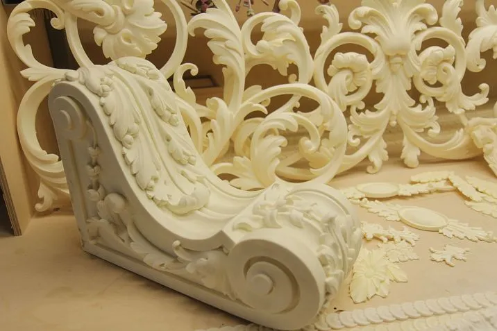 Восстановление исторических интерьеров требует максимального соответствия оригинальным образцам. Часто необходимо изготовление элементов по индивидуальным эскизам или слепкам с сохранившихся фрагментов.