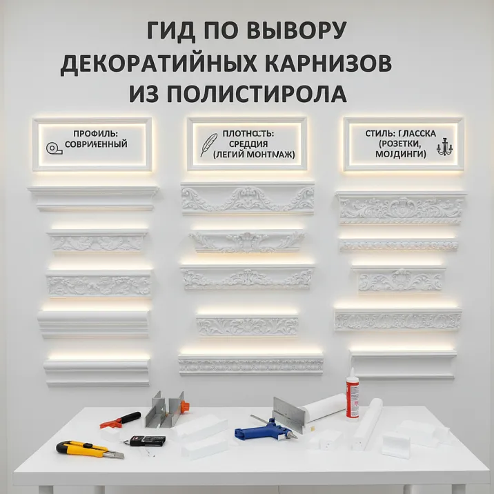 Выбор декоративных карнизов из полистирола - это увлекательное путешествие на стыке эстетики и функциональности, традиций и инноваций. Правильно подобранный карниз завершает интерьер, как рама завершает картину. Он создает визуальную границу между стеной и потолком, задает стилистику пространства, корректирует пропорции, становится основой для эффектных световых решений.