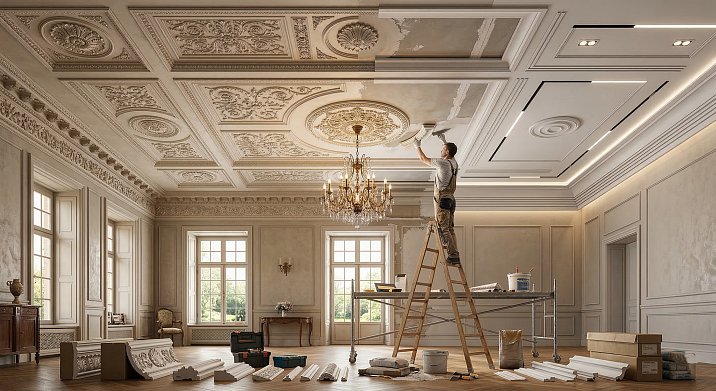 Есть материалы, которые не стареют. Гипс — один из них. Тысячи лет он был главным декоративным языком архитектуры: лепщики выбивали орнаменты на дворцовых потолках, украшали своды церквей, формировали карнизы аристократических особняков. И сегодня, когда речь заходит об оформлении потолка, гипсовая лепнина по-прежнему остаётся точкой отсчёта — материалом, с которым сравнивают всё остальное.
