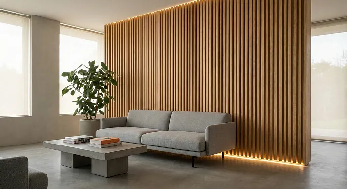 Рейки — тренд, ставший классикой. Они не исчезнут, как некоторые временные модные решения. Правильно спроектированная реечная стена актуальна годами. Плюс возможность перекрасить, изменить промежутки, добавить подсветку — обновление без демонтажа.