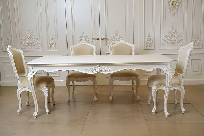 Резьба на белой мебели приобретает особую выразительность. Каждая деталь, каждая линия становится более четкой и заметной. Белый цвет подчеркивает игру света и тени в резных элементах, создавая эффект объемной скульптуры.