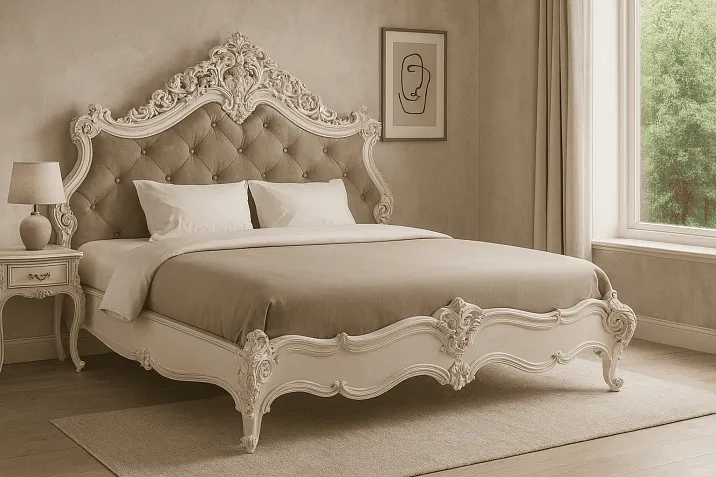 Резные изголовья кроватей рассказывают истории — здесь можно увидеть мотивы флорентийского Возрождения, отголоски венецианской роскоши, элементы римской архитектуры. Каждый завиток, каждый листик выполнен вручную мастером, который понимает: он создает не просто мебель, а семейную реликвию.