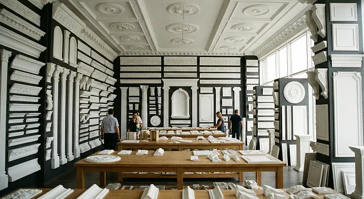 Но что такое полиуретановые изделия для декора на практике? Сколько типов, форм, размеров существует? Как ориентироваться в этом многообразии, когда каталоги производителей содержат 1500-2000 позиций? Эта статья — систематизированный путеводитель по вселенной полиуретановой лепнины. Мы разложим все изделия по категориям: погонажные (молдинги, карнизы, плинтусы, наличники — что идёт метрами, монтируется вдоль линий), штучные (розетки, консоли, замковые камни, накладки — что продаётся поштучно, устанавливается в конкретных точках), архитектурные (колонны, пилястры, капители, базы — полноразмерные ордерные элементы), фасадные (русты, сандрики, фронтоны — для экстерьеров), мебельные (накладки, ножки, фасадные декоры — для апгрейда мебели), специальные (гибкие элементы для арок и кривых, угловые для упрощения монтажа). Каждую категорию разберём детально: размеры, назначение, технология производства, области применения, цены, особенности монтажа. Цель — дать вам полную карту территории, когда вы понимаете, какое изделие для какой задачи, как изделия сочетаются, как собрать из них композицию, превращающую интерьер или фасад в произведение.