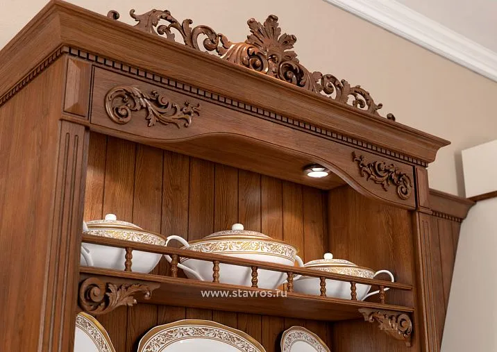 Патинирование создает эффект благородного старения материала. Техника основана на контрастном выделении углублений и выступающих частей. Темная патина в резных элементах и светлые участки на плоскостях создают убедительную имитацию многовекового использования.