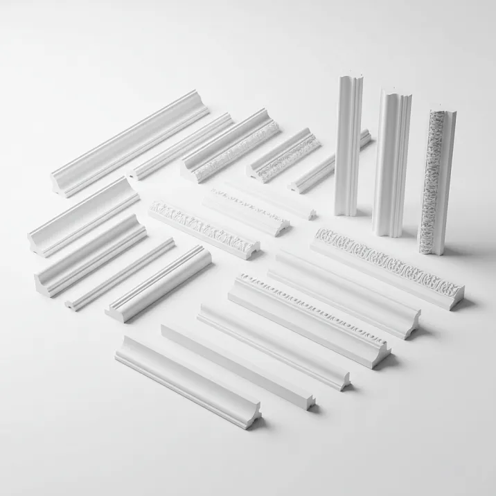 Ширина профиля — первый параметр выбора. Узкие молдинги (3-5 см) создают деликатные линии, подходят для минималистичных интерьеров, небольших помещений. Средние (6-10 см) — самая универсальная категория, работающая в большинстве интерьеров. Широкие (более 10 см) — для просторных помещений с высокими потолками, классических интерьеров, где требуется выразительный декор.