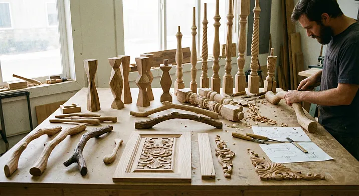 Балясины — вертикальные опоры лестничного ограждения — традиционно были полем для демонстрации мастерства резчика. Резная балясина — это скульптура в миниатюре, где каждый элемент имеет смысл, пропорцию, визуальный ритм.