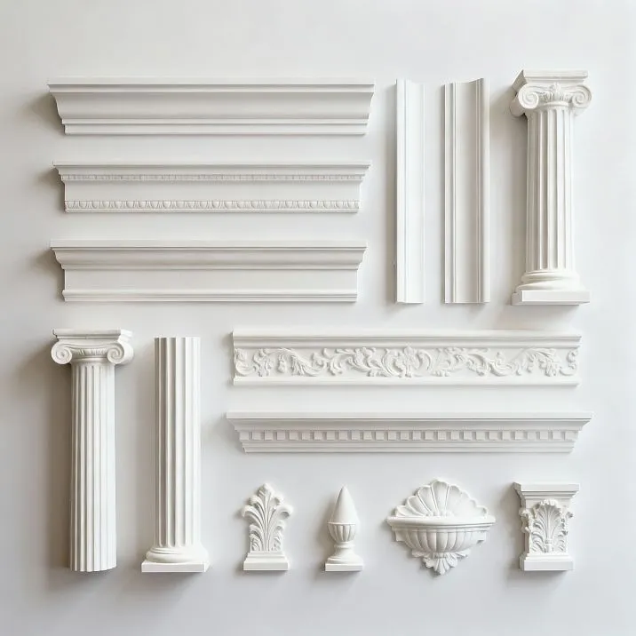 Антаблементы объединяют колонны в единую систему, создавая горизонтальное завершение фасадной композиции. Архитрав, фриз и карниз должны соответствовать пропорциям выбранного ордера. Модульность элементов позволяет создавать антаблементы любой длины из стандартных фрагментов.