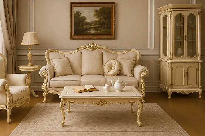 Классическая мебель — это изделия, выполненные в исторических художественных стилях (барокко, рококо, ампир, классицизм) с использованием традиционных натуральных материалов, соблюдением классических пропорций и применением аутентичных декоративных элементов, основанных на принципах античного искусства и архитектуры.