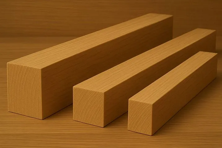 Клееный дубовый брус производится в широком диапазоне сечений — от 60×60 мм до 500×500 мм. Длина изделий может достигать 20 метров, что открывает безграничные возможности для архитекторов и конструкторов.