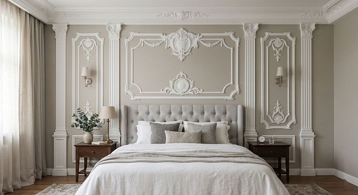 «Неоклассик Лайт» — декор для стен — лёгкая неоклассика для спокойной спальни.