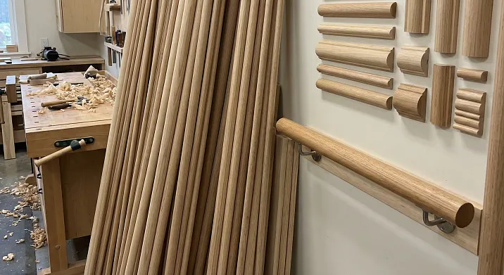 Для интерьерных поручней оптимален дуб или ясень — твёрдые, износостойкие, долговечные. Для декоративных элементов подойдёт бук — красивая текстура, хорошо обрабатывается. Для наружных конструкций — лиственница, стойкая к влаге и перепадам температур. Для бюджетных проектов — сосна, доступная и лёгкая.
