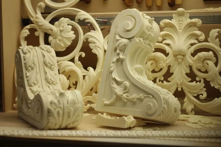 Многоплановость рельефа создает богатую игру светотени, оживляющую поверхности. Глубокие подрезки, высокие выступы, сложные переходы между планами требуют виртуозного мастерства при изготовлении мастер-моделей.