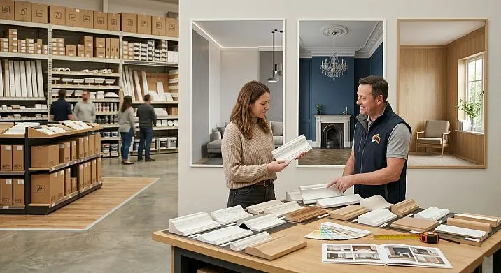 Купить потолочный плинтус — задача, решение которой зависит от пяти параметров одновременно: помещение, высота потолка, стиль интерьера, материал и согласованность со смежным декором. Именно эти пять параметров мы и разберём — последовательно, без воды, с конкретными рекомендациями для каждого сценария.